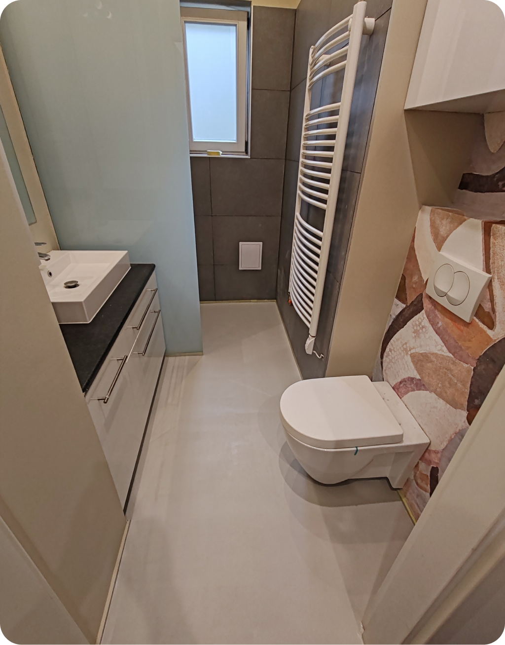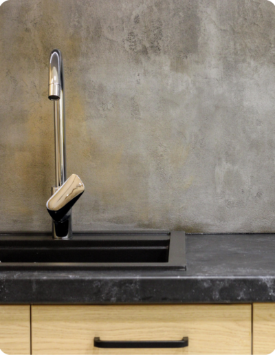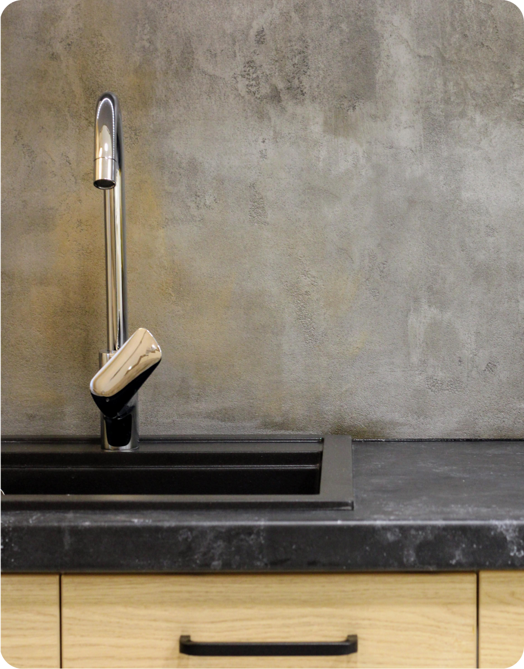Modern, mindössze 2-3mm vastagságú dekoratív bevonat, amely legfőbb előnye, hogy a régi burkokat bontás nélkül, fugamentes felületet létrehozva újul meg, falon és padlón is.